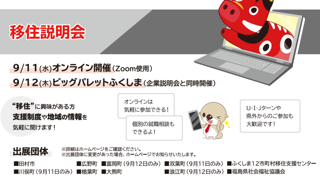 ふくしまで働こう@移住説明会 出展のお知らせ(2024/09/12)