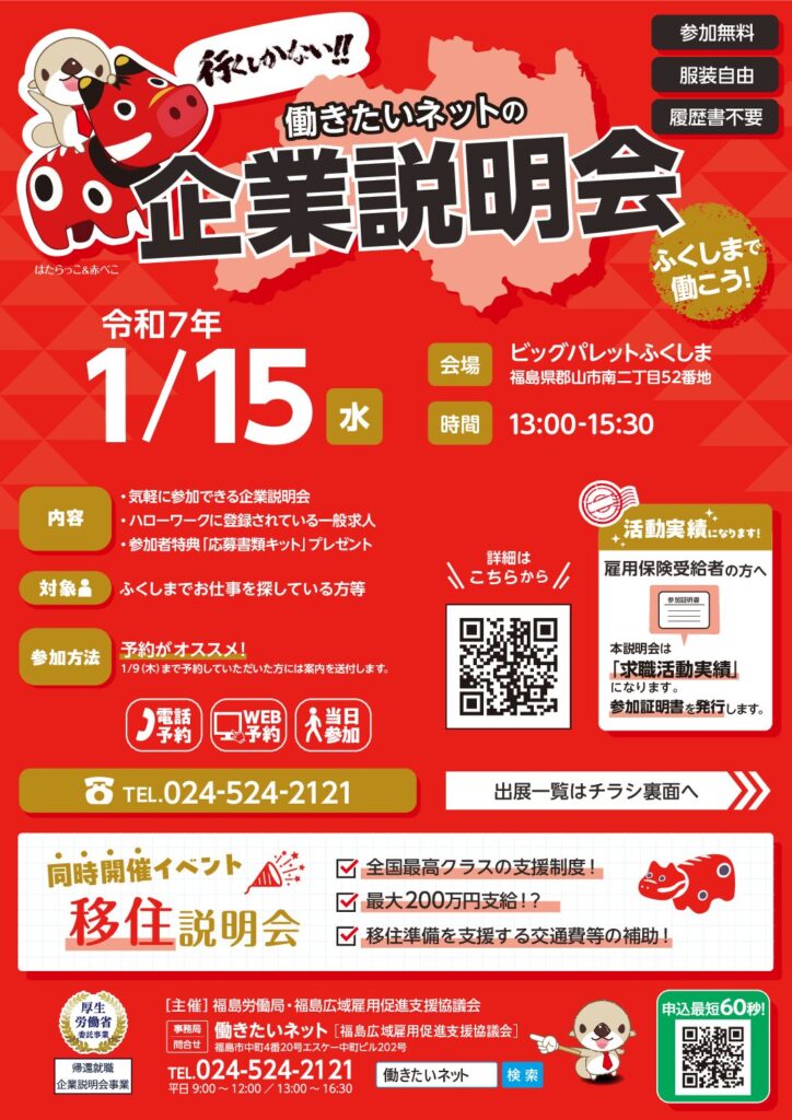 ■働きたいネットの企業説明会開催■~同時開催!移住説明会に出展決定!~福島県内... -