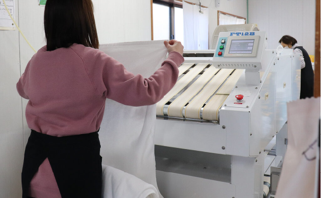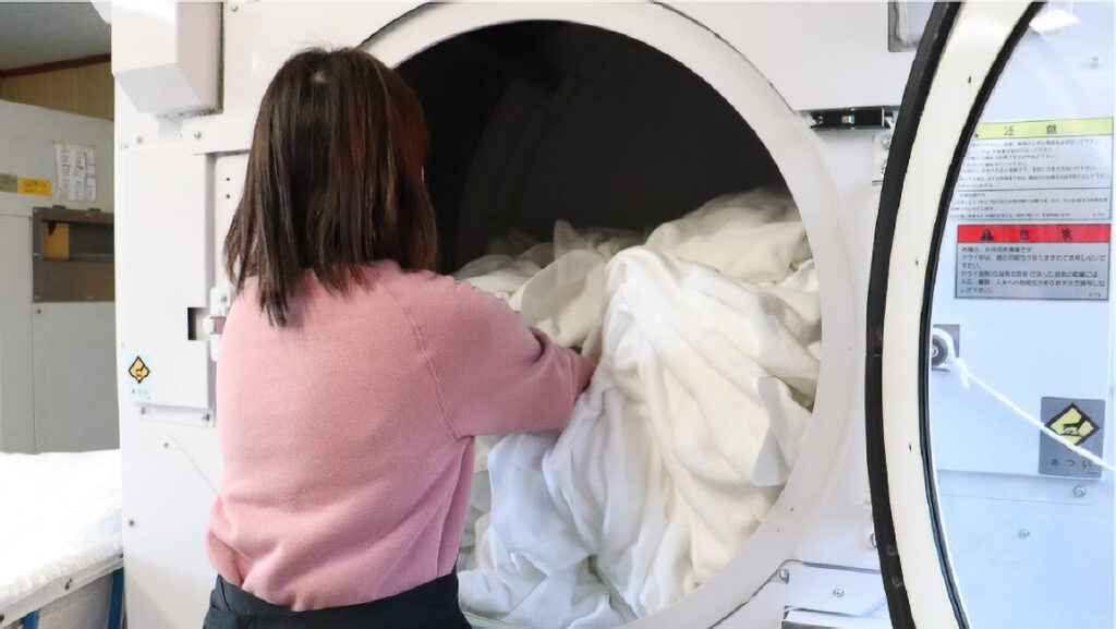 最初はタオルたたみなどの軽作業からはじめていただき、徐々に布団の乾燥など、オペレーションの行程が多い作業を覚えていただきます。業務は2名体制で進めるので安心です。