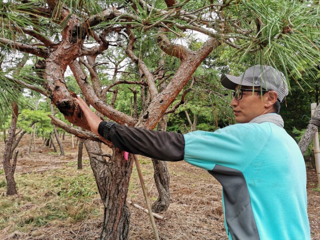 冬の山採りものや規格ものの植木の生産所としての植木畑の手入れを行います。植木剪定や草刈り、除草剤の散布などの植木畑の整備を行う仕事です。
